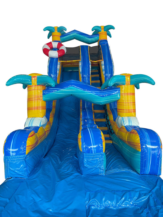 (ONE) 18'H Double Jungle Drop Water Slide